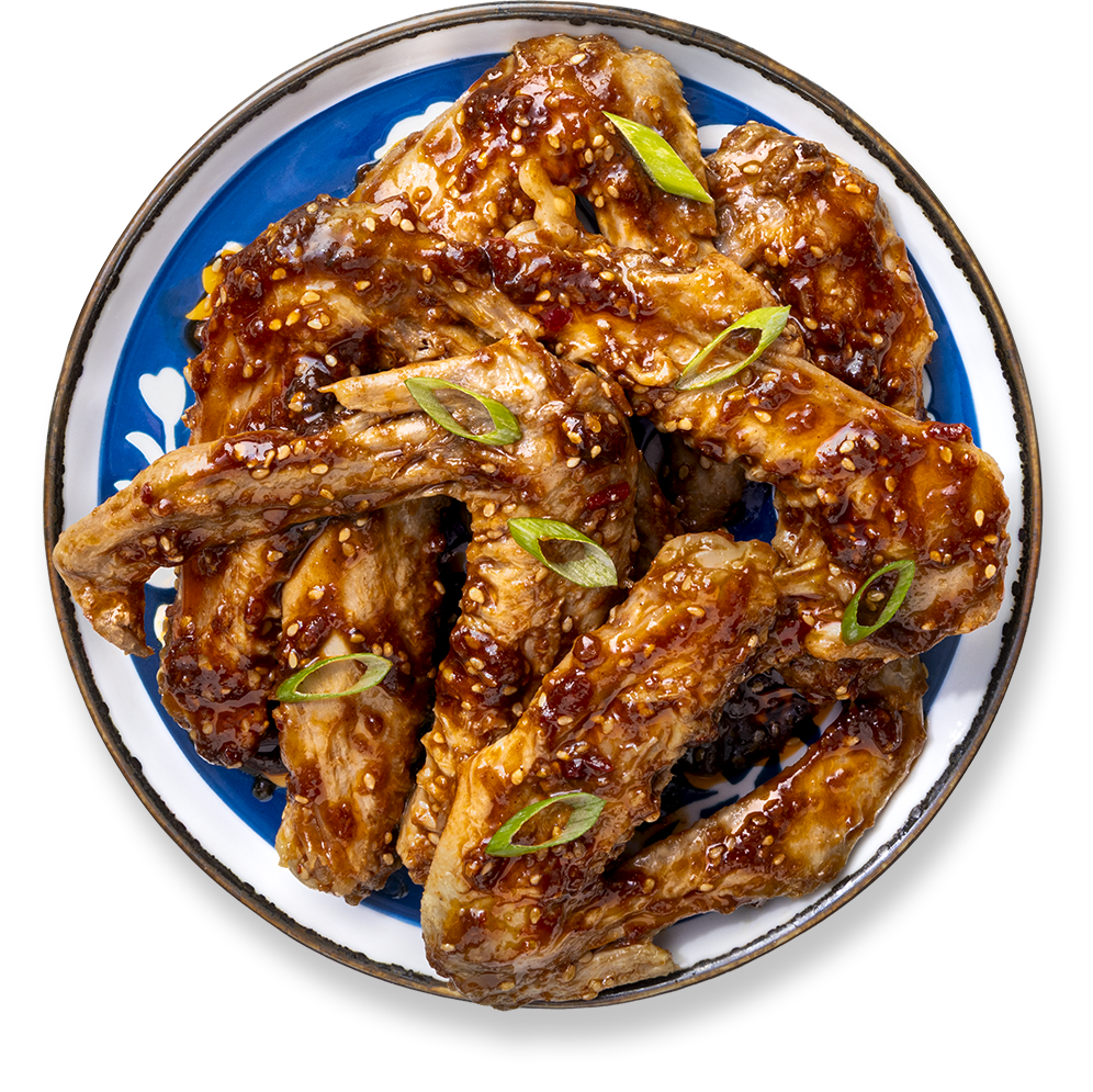 Deze eendenvleugels worden langzaam getrokken in een aromatische kruidenbouillon en gemarineerd in een traditionele sha cha saus. Sha cha saus is een Taiwanese barbecuesaus gemaakt van olie, knoflook, ui, sesam, gember en chilipeper, en krijgt zijn rijke smaak van gedroogde garnalen.